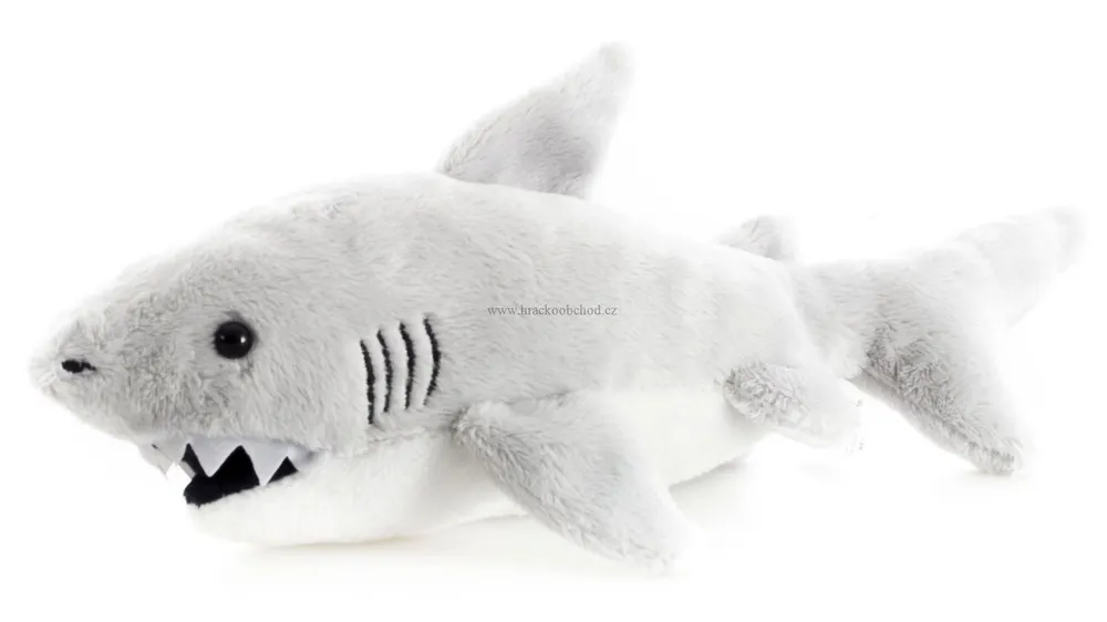 Plyšový žralok o velikosti 26 x 9 x 7 cm.