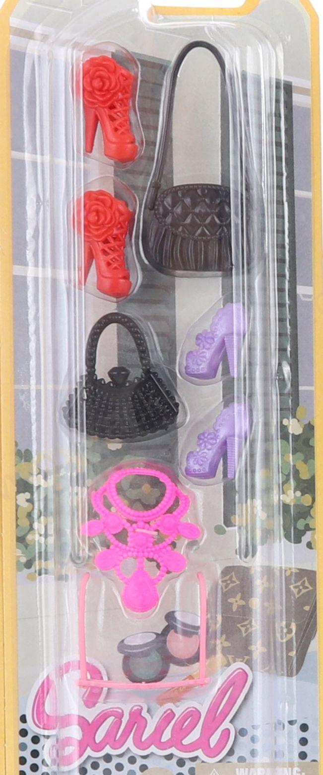 Balení obsahuje různé doplňky, jako např. boty, kabelky, náhrdelníky, apod.