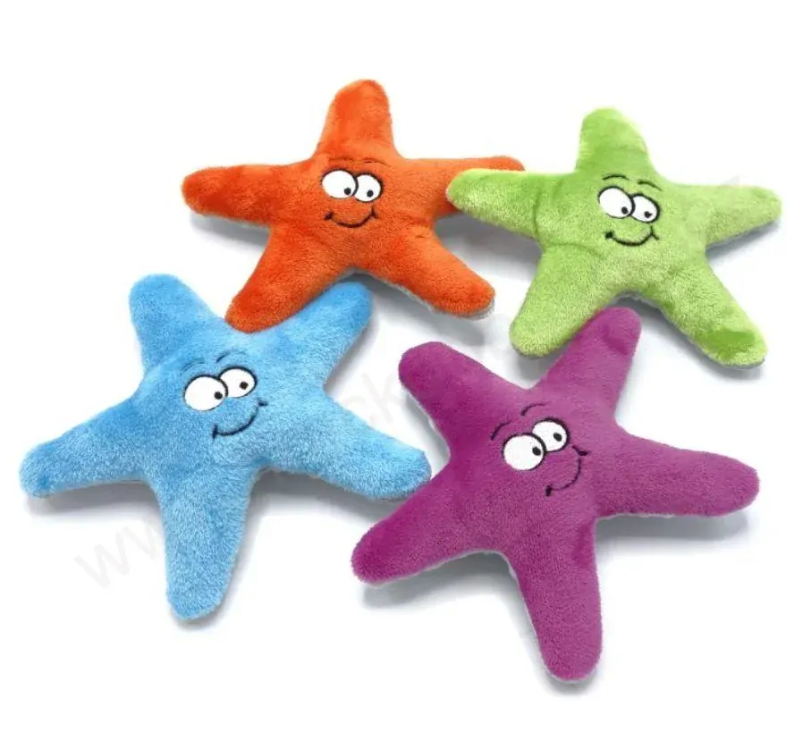 Veselá hračka pro psy z plyše potěší každého huňáče. Modrá mořská hvězdice pejska nadchne heboučkým plyšem, zajímavým tvarem a samozřejmě i pískátkem, jehož zvuku neodolá. Plyšová hvězdice je ideální pro aportování a další společné hry. Protože se pejsci s hračkami nemazlí, ušili jsme jí ze dvou vrstev materiálu – vnější strana je z heboučkého plyše a vnitřní vrstva je z odolnější látky. Hvězdice je několikrát prošitá pevnou technickou nití.