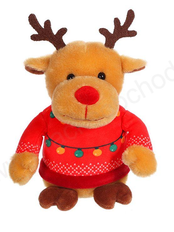 Plyšové zvířátko ve vánočním motivu. Pro lepší stabilitu sezení má ve spodní části všité kuličky.