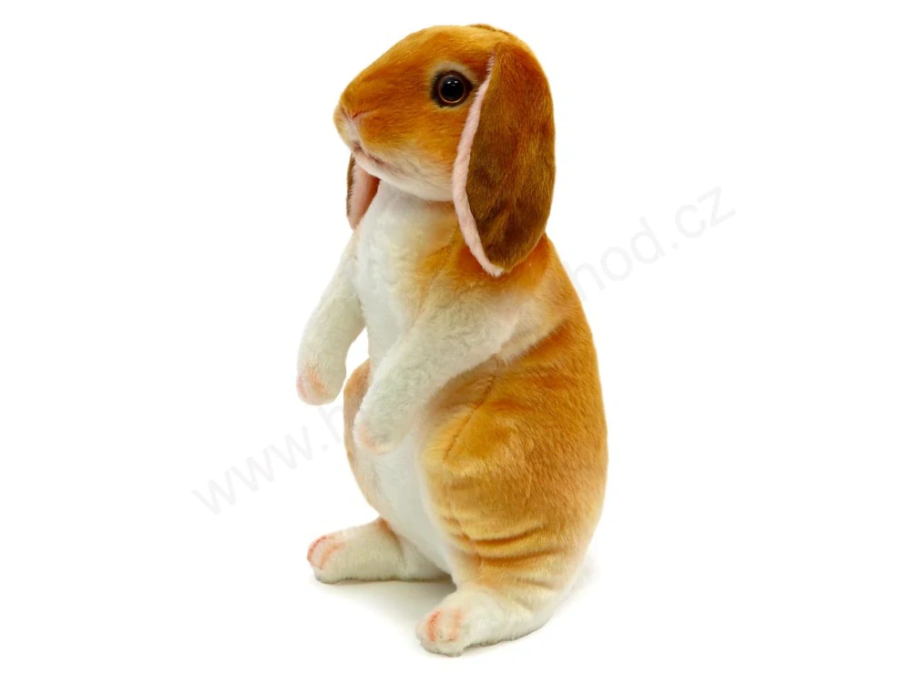 Králíci jsou zvědaví a rádi panáčkují, mají tak lepší výhled. Náš plyšový králík si lebedí na zadních nožkách a zvědavá očka se sklopenýma ušima mu dodávají neodolatelně roztomilý výraz. Vyhráli jsme si s barevnou strukturou srsti, která přechází z hnědé do bílé na bříšku a na packách. Naše plyšová zvířátka vyrábíme z naprosto nezávadných materiálů, takže si je mohou přitulit i nejmenší děti. Jejich srst je navíc snadno omyvatelná, stačí ji otřít vlhkým hadříkem a špína je pryč.
