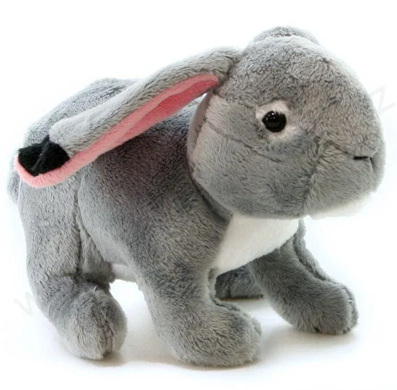 Plyšový šedý králíček.