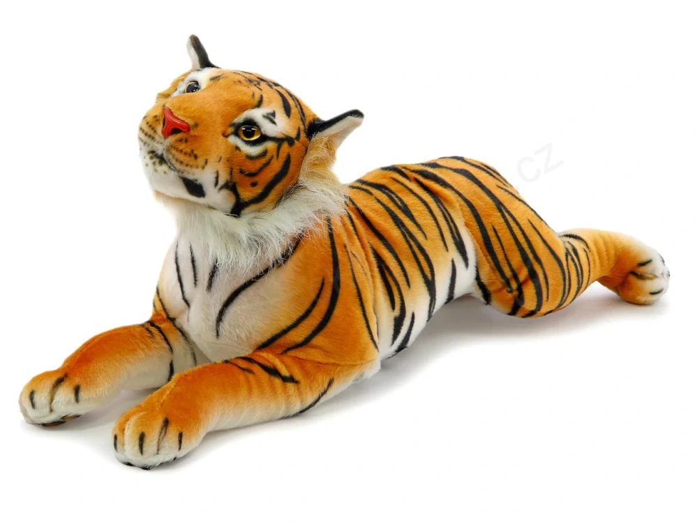 Plyšový tygr hnědý ležící 60 cm + ocas 25 cm
