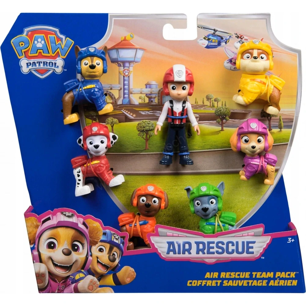 Tato sada figurek z Tlapkové patroly obsahuje 7 sběratelských figurek Chase, Rydera, Marshalla, Rockyho, Rubblea, Zumu a Skye, které zdobí jejich zcela nové letecké bundy a helmy Air Rescue, takže každá figurka vypadá stejně jako v seriálu!