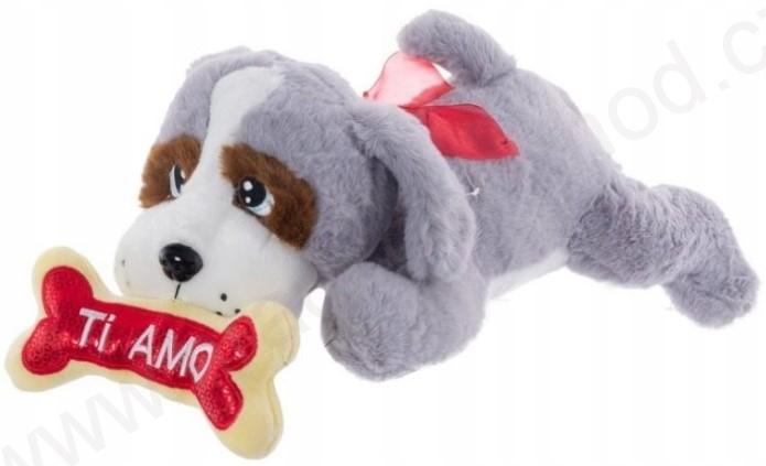 Tulimi Plyšový pejsek s kostičkou, 40cm - šedýskladem více ks197 Kč/ ks163 Kč bez DPH